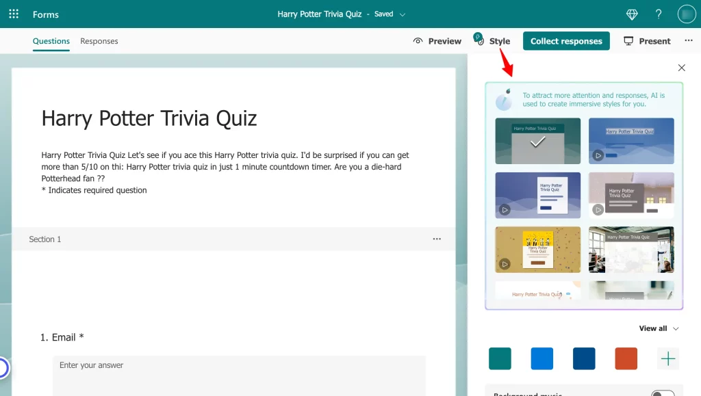 - Furthermore, you can change the themes of the form or color, and even add background music.